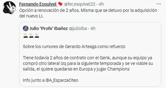 De acuerdo a información del periodista vinculado al mercado, Fernando Esquivel, el Genk acaba de fichar a otro lateral izquierdo, lo cual detuvo la renovación de Arteaga con la institución. ¿Se hace más viable su salida y el Azulcrema será su próximo destino?