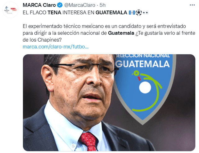 De acuerdo a información de ESPN, el ‘Flaco’ Tena tiene grandes chances de ser el nuevo entrenador de la Selección de Guatemala. De hecho, la fuente comunica queeste lunes por la tarde tendrá una reunión de carácter virtual con el Comité Ejecutivo de la Federación Nacional de Futbol de Guatemala para establecer un primer contacto, conocer ideas e intenciones.