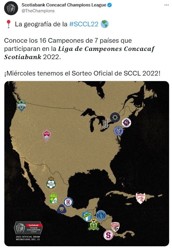 El sorteo de laConcacaf Champions League 2022 va a tener lugar HOY,miércoles 15 de diciembre, con sede en la ciudad de Miami.