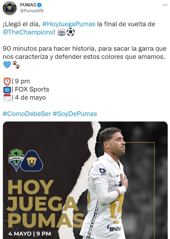 Se aproxima el desarrollo de la revancha del partido que definirá al próximo campeón de laConcachampions 2022. En este caso, la realidad es que tantoPumas UNAMcomoSeattle Soundersempataron 2-2 en el juego de ida que se disputó en México, por lo que en Estados Unidos conceremos al nuevo ganador.