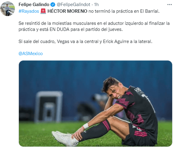 La noticia que sacudió a la escuadra regiomontana este martes es la de la posible baja de Héctor Moreno para enfrentar a las Águilas. El defensa de la Selección Mexicana se perfilaba para hacerdupla con César Montes en la central, con quien inclusive comenzó trabajando junto al resto del posible equipo titular.