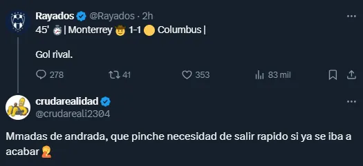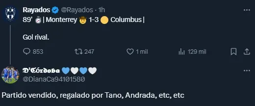 Sobre el cierre del primer tiempo, Andrada cometió un error que permitió el empate visitante. Mientras tanto, en la segunda etapa llegaron el segundo y tercer gol del equipo de la MLS, los cuales terminaron de sepultar las chances de Rayados. Y tras la derrota, los aficionados apuntaron contra los culpables.