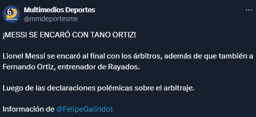 Según la fuente, Messi se encontró con Fernando Ortiz en ese momento, y ambos se habrían dicho algunas cosas subidas de tono. Por tal motivo, la jornada en el Chase Stadium habrían terminado calientes, lo cual le agrega un condimento extra para el juego de vuelta.