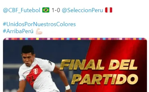 Con un Neymar Jr. encendido, el equipo que dirige Tité fue superior desde los primeros minutos y se aventajó en el marcador con un gol de Lucas Paquetá a los 35 minutos tras asitencia del futbolista del PSG. En la segunda mitad Perú se lo llevó por delante y pudo haber igualado las acciones, pero no logró concretar las acciones y el marcador terminó con derrota por la mínima.