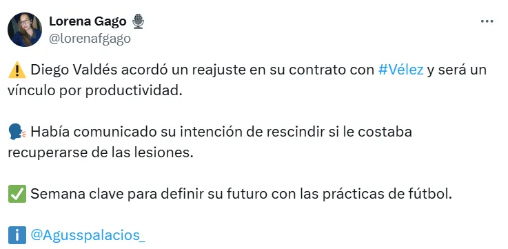 No obstante, aun así su futuro en Vélez no estaría asegurado, ya que ambos comunicadores aseguraron que esta semana será clave para definir su futuro con prácticas de futbol. Al cabo, se tratarán de días cruciales para saber qué será de la carrera del tricampeón con América.