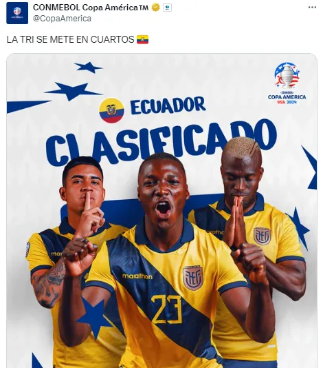 Así anunció CONMEBOL el pase de Ecuador a cuartos de final de la Copa América