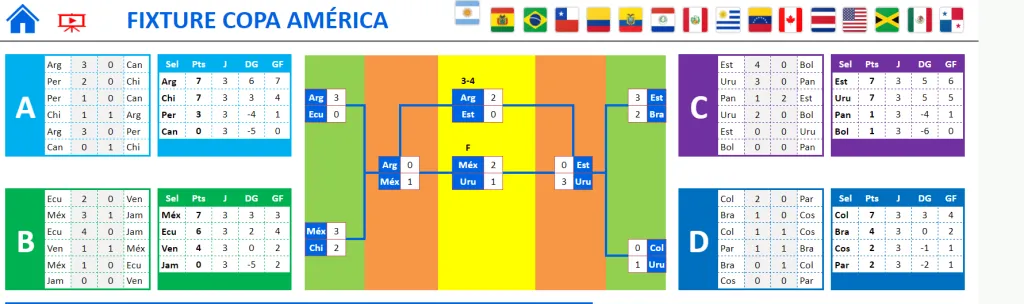 Ahora deberás seleccionar cómo crees que finalizará cada grupo, y quiénes clasificarán a la fase final quedando en los primeros dos lugares. Una vez hecho esto, será el momento de avanzar a los cuartos de final. El propio simulador de la Copa América 2024 establecerá los cruces dependiendo de las elecciones del primer paso.