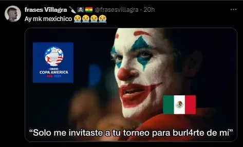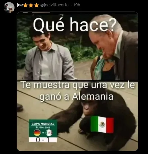 También hubo quienes, con memes, se lamentaron de la derrota de México, por considerar que hubiese sido una buena ocasión para generar interacciones con los usuarios del combinado tricolor, tal como sucedió en el enfrentamiento de la pasada Copa del Mundo.