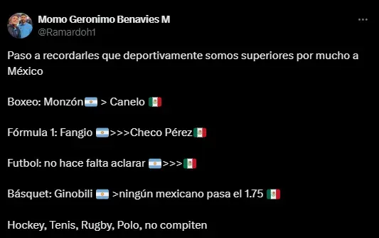 Otros se volcaron a las clásicas burlas referidas al ‘Chavo del Ocho’, quizás la más reiterada entre los fanáticos argentinos, también en torno a las habituales respuestas de los mexicanos sobre la economía de la nación sudamericana, y cómo no también el recordatorio de la diferencia de Mundiales ganados.