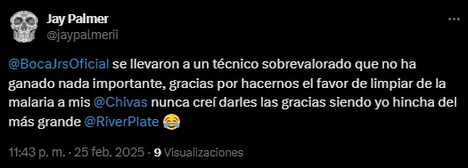 Luego de este bochornoso episodio, quienes sí disfrutaron del resultado fueron los fanáticos de Chivas, que reaccionaron de maneras muy graciosas a la eliminación del equipo argentino de la Copa Libertadores, con memes y comentarios a modo de burla del club de su ex estratega. A continuación, las mejores repercusiones.