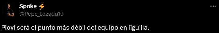 “Piovi va a costar el título, que se largue de una vez”, “no es por put*ar a Piovi, pero no lo quiero en la Liguilla”, “ya es necesario que esté en la banca, muchos errores que no se pueden permitir, no quiero pensar que pase eso en la Liguilla” y “Piovi MVP de Tigres”, fueron algunos de los comentarios de los simpatizantes celestes en X (ex Twitter).