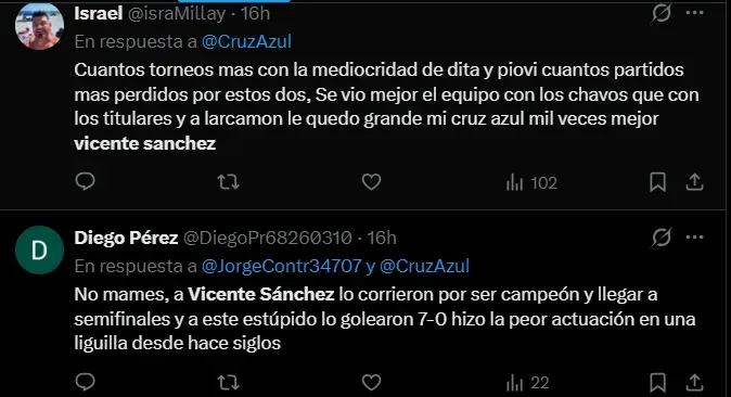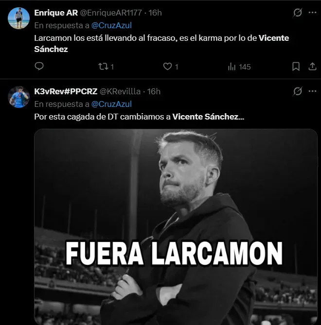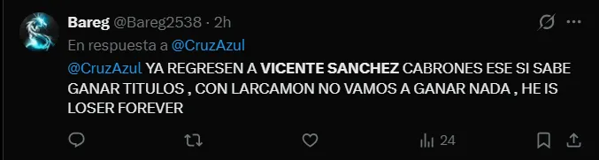 Tras el compromiso, la afición se expresó con enojo sobre Nicolás Larcamón en las redes sociales, sobre todo en la cuenta de ‘X’ de los Celestes. Además, pidieron la vuelta de un viejo conocido. Ni más ni menos que Vicente Sánchez, el anterior entrenador con el que ganaron la Concachampions 2025.