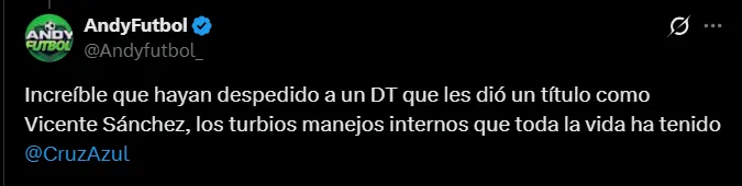 - La afición celeste expresó su molestia en redes sociales y pidió formalmente el regreso de Vicente Sánchez, quien fue cesado por la directiva tras ganar la Concachampions 2025.