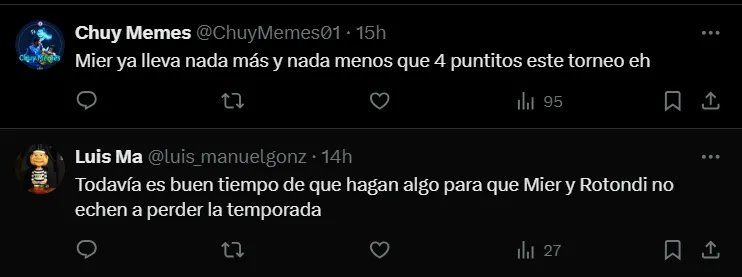 Otros no tuvieron piedad y arremetieron contra el arquero: “Kevin Mier haciendo una Mier-dada, no importa cuando lo leas“, “Mier ya parece Ochoa es el coladeras 2“, “Alguien le puede decir a Kevin Mier que la dejé de carga un solo minuto“.