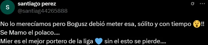 Fue luego del 0-0 de la Jornada 15 del Clausura 2025 ante las Águilas cuando algunos fanáticos celestes se volcaron a las redes sociales para manifestar su descontento con el polaco Mateusz Bogusz. Al respecto, uno de ellos no dudó y sentenció que “es hora de empezar a meterle presión” al delantero que fichó por La Máquina en el reciente mercado de pases de invierno.