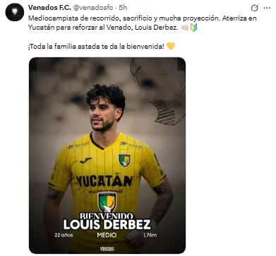 Lamentablemente en el primer equipo de La Máquina no tuvo las oportunidades que estaba buscando y fue precisamente este sábado cuando su nuevo equipo en la Liga de Expansión MX, dio a conocer la llegada de Louis como nuevo integrante de la escuadra de los Venados FC y que ha sido integrado a la pretemporada de la escuadra.