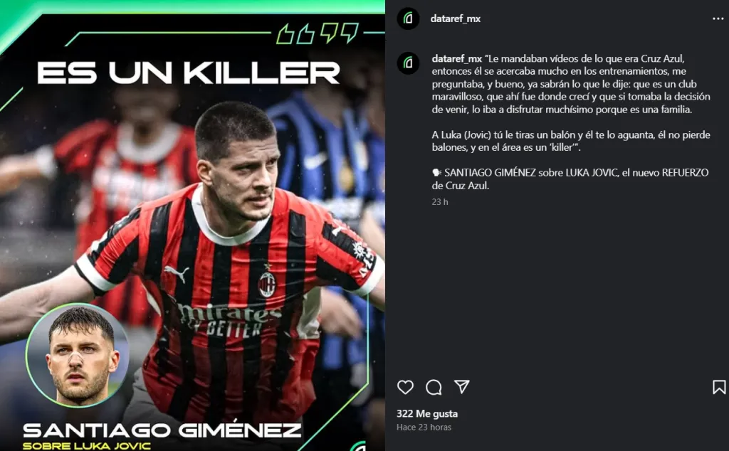“Le mandaban vídeos de lo que era Cruz Azul, entonces él se acercaba mucho en los entrenamientos, me preguntaba, y bueno, ya sabrán lo que le dije: que es un club maravilloso, que ahí fue donde crecí y que si tomaba la decisión de venir, lo iba a disfrutar muchísimo porque es una familia”, expresó. Y luego agregó: “A Luka (Jovic) tú le tiras un balón y él te lo aguanta, él no pierde balones, y en el área es un ‘killer’”.