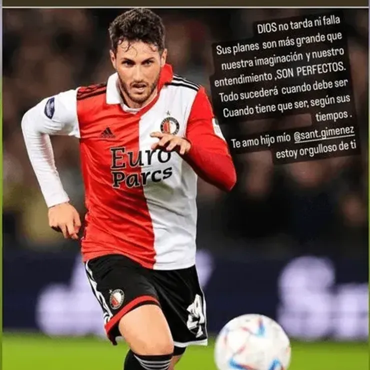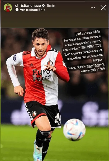 Tras confirmarse que Santiago Giménez no está en la convocatoria de la Selección Mexicana para el Mundial Qatar 2022, el Chaco publicó una foto de su hijo con un mensaje para motivarlo en este momento. “DIOS no tarda ni falla. Sus planes son más grandes que nuestra imaginación y nuestro entendimiento. SON PERFECTOS. Todo sucederá cuando debe ser, cuando tiene que ser, según sus tiempos. Te amo hijo mío, @Sant.Gimenez, estoy orgulloso de tí“.