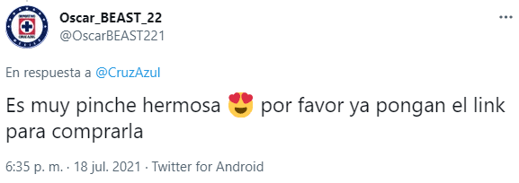 Luego del anuncio del conjunto de La Noria, las reacciones de los aficionados no se hicieron esperar en las redes sociales, y en la gran mayoría de los usuarios se pudo ver comentarios positivos y elogiosos hacia la nueva playera con la que Cruz Azul intentará conseguir el bicampeonato en el Torneo Apertura 2021.