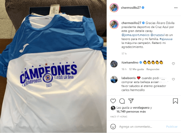 “Gracias Álvaro Dávila,Presidente Deportivo de Cruz Azul, por este gran detalle. ¡Caray!Es un tesoro para mí y mi familia. ¡La Máquina campeona!Reiteró mi agradecimiento”, escribió el exdelantero en sus redes sociales con una indumentaria especial por la consagración.
