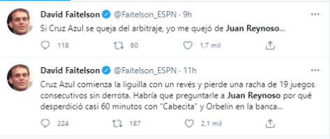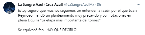 Es por ello que en redes sociales se desataron las críticas en contra del estratega de Cruz Azul, reclamándole sus ‘experimentos’ y las ahora cuestionadas rotaciones en plena Liguilla, justo cuando el equipo debería mandar a sus mejores hombres a la cancha para mantenerse con vida en la pelea por el título de la Liga MX.