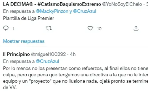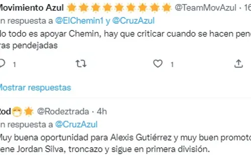 A través de las redes sociales, los aficionados de Cruz Azul opinaron negativamente sobre las reincorporaciones de Alexis Gutiérrez y Jordan Silva, sobre todo por el zaguero ex América. “Se termina la participación en el Clausura 2023”, “plantlla de Liga Premier” o “muy buen promotor tiene Jordan Silva”, fueron algunos de los comentarios contra la directiva.