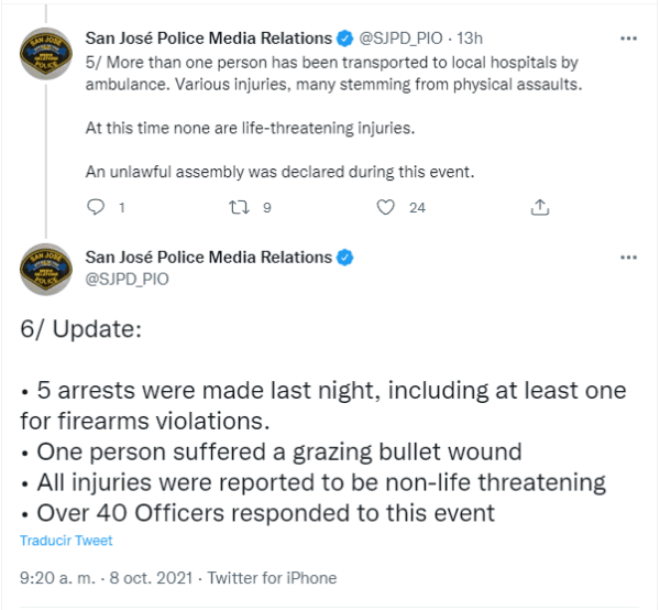 A su vez, el comunicado oficial del cuadro de la MLS aseveró que “estamos comprometidos a trabajar con el SJPD y nuestra comunidad para hacer de nuestros eventos un ambiente seguro para todos los fanáticos”.