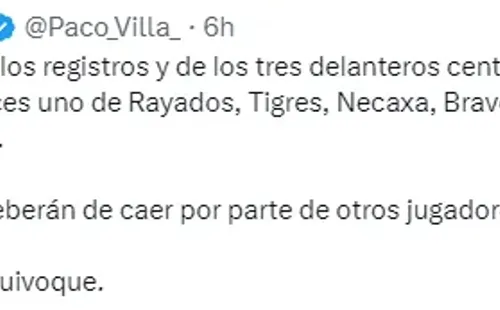 A través de su cuenta de Twitter, el narrador de TUDN tundió a los actuales atacantes de la plantilla de Cruz Azul, y disparó: “Se cerrarán los registros y de los tres delanteros centro que tiene el Cruz Azul, no haces uno de Rayados, Tigres, Necaxa, Bravos, Toluca, Pumas, etcétera. Los goles deberán de caer por parte de otros jugadores. Ojalá me equivoque”.