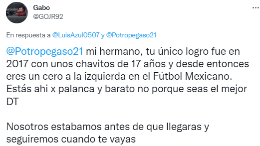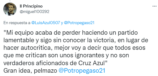 Lejos de calmar las aguas, las polémicas declaraciones del director técnico de Cruz Azul provocaron un aumento en los reproches de la grada, lo cual se tradujo en todo tipo de mensajes hacia él a través delas redes sociales.