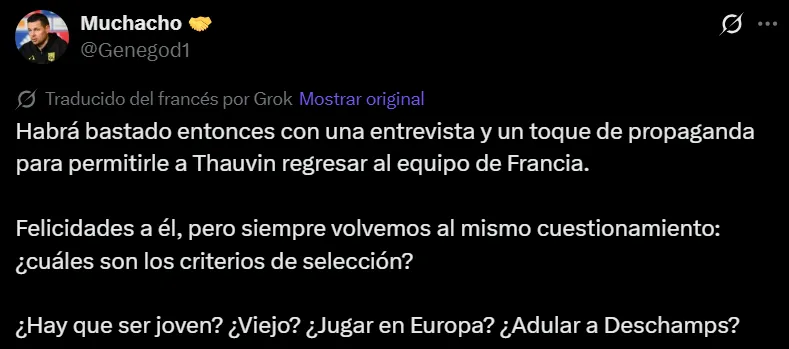 Tras la publicación del anuncio de la citación de Florian Thauvin, los aficionados franceses explotaron en la caja de comentarios con mensajes como “nunca nos harán creer que fue buen jugador” o “convocatoria de marketing”. Por otro lado, muchos cuestionaron a Didier Deschamps no haber elegido a un jugador más joven para ocupar el lugar que dejó libre Barcola.