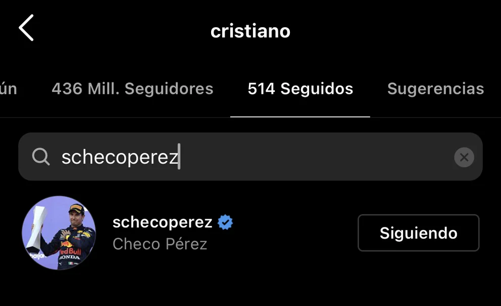 Asimismo, Checo Pérez no es el único piloto de Fórmula 1 al que sigue Cristiano Ronaldo. El portugués también tiene en su lista al británico, siete veces campeón mundial, Lewis Hamilton. Sin embargo, no aparecen otras personalidades de la competición, como lo pueden ser Max Verstappen –último ganador del campeonato de pilotos- o el español Fernando Alonso.
