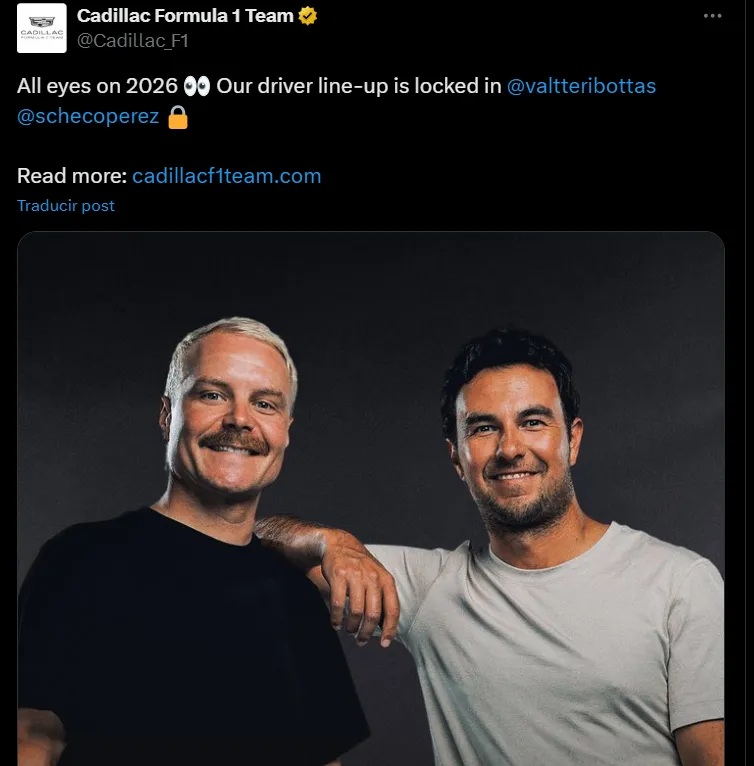 “Todas las miradas puestas en 2026. Nuestra alineación de pilotos está definida”, escribieron en la cuenta oficial de la escudería. Allí confirmaron al mexicano junto a Valeri Bottas como los dos pilotos principales para la próxima temporada, despertando gran expectativa.
