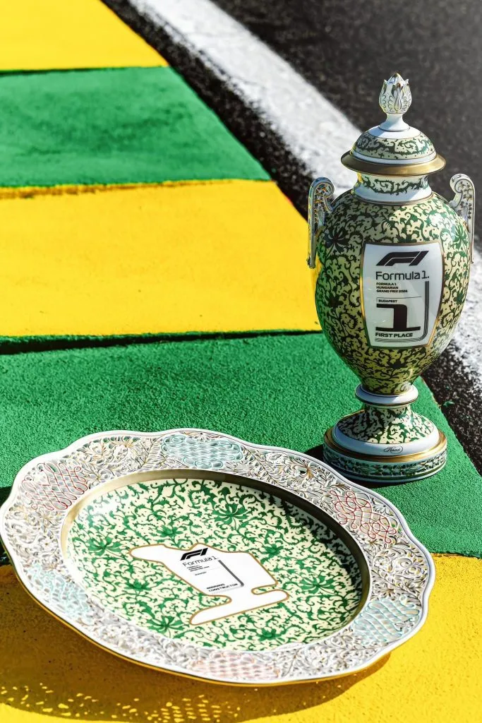 Una de las marcas registradas de Senna mientras estaba en actividad era su famoso casco amarillo y verde. Por eso, Herend se basó en estos colores a la hora de elaborar el trofeo de porcelana para la carrera del Gran Premio de Hungría en la temporada 2024.