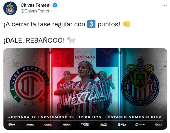 El partido de Toluca vs. Chivas de Guadalajaraserá el viernes 19 de noviembredesde el Estadio Nemesio Diez a las 17:00 horas CDMX.