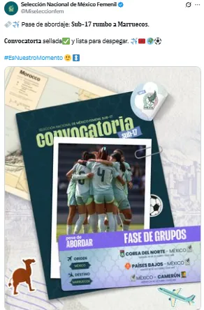 El próximo sábado 18 de octubre comienza el camino para la Selección Mexicana Femenil en el Mundial Sub 17 en Marruecos. Ese día será el debut de las nacionales en la fase de grupos de la competencia donde tendrán que medirse a las actuales campeonas del torneo, Corea del Norte, por lo que arrancarán con un partido complicado.
