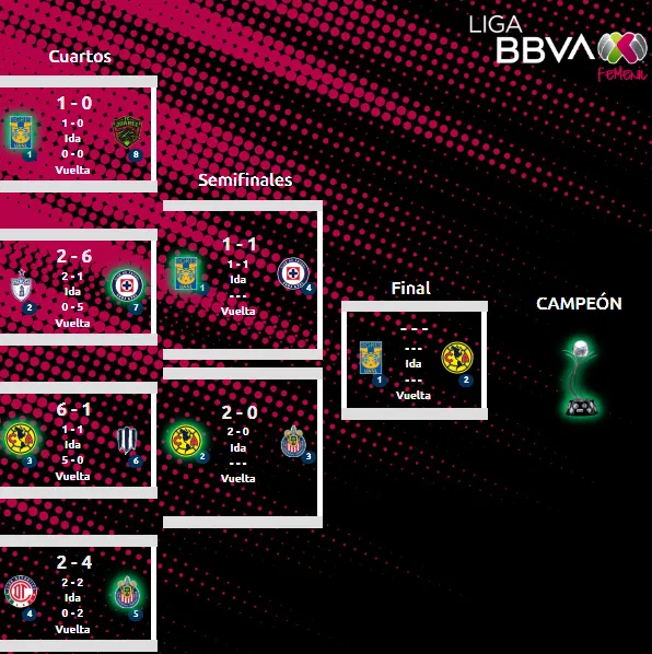 En el juego de La Máquina, las Celestes tienen que vencer a Tigres en el Estadio Universitario el día de mañana, el juego es a las 17:00 horas del centro de México; un empate y una derrota no les sirve, por lo que si quieren llegar a la Final tendrían que vencer a las Amazonas. Por su parte, América debe mantener el marcador, es decir, una victoria sobre Chivas mañana a las 19:00 horas en el Estadio Azulcrema para que se juegue el Clásico Joven en la Final.