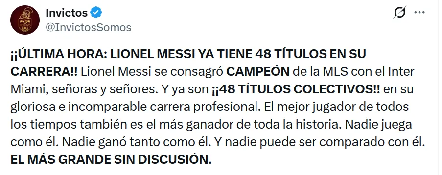 Con su reciente MLS Cup 2025, Messi acumula un total impresionante de 48 títulos a lo largo de su carrera, consolidándose como el futbolista más ganador de todos los tiempos. Su impacto se siente tanto a nivel individual como en los equipos en los que ha jugado, dejando una huella imborrable en cada club que representa.