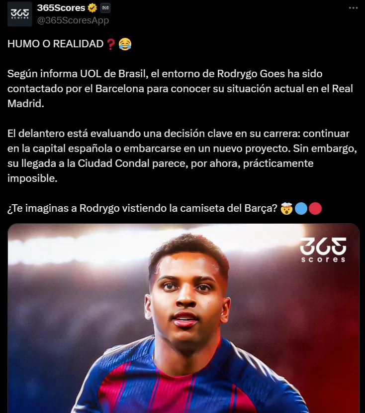 Más allá de lo deportivo, también hay un factor económico importante a considerar. Si bien Rodrygo no es prioridad para el Real Madrid, el club no está dispuesto a dejarlo ir por poco dinero. Según los reportes, la cifra que pedirían por su ficha ronda los 100 millones de euros, un número muy elevado para el Barcelona, teniendo en cuenta su situación financiera.