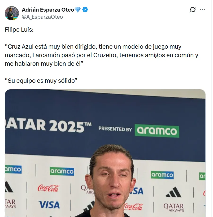 El técnico de Flamengo, Filipe Luis, campeón reciente de la Copa Libertadores y del Brasileirao, ofreció una conferencia de prensa en la previa y no dudó en enviarle un mensaje directo a Cruz Azul: “Un equipo que está lleno de campeones, siempre va a querer ir por más”, señaló, dejando claro que su plantel no se conforma con lo ya conseguido.