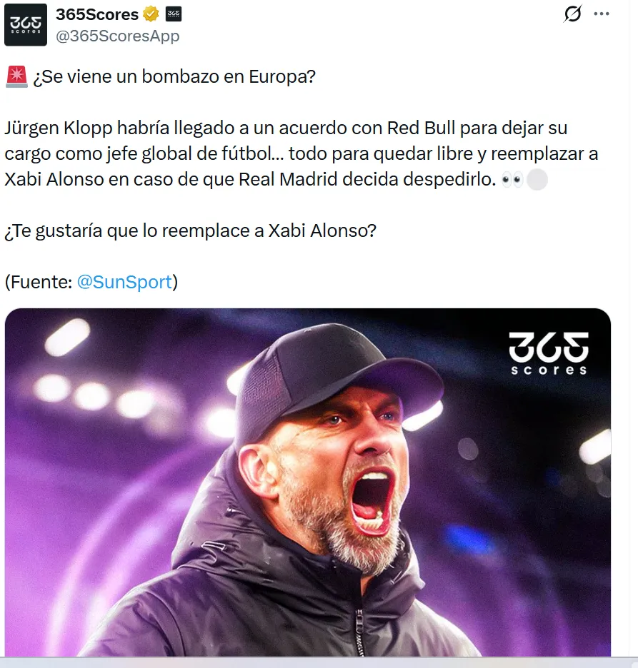 De momento, todo depende de la decisión de Florentino Pérez y su equipo de trabajo. Xabi Alonso sigue al frente del plantel, pero la continuidad no está garantizada si los resultados no cambian pronto. Entretanto, el nombre de Klopp continúa circulando como el plan de emergencia más fuerte que tiene el club blanco para afrontar un posible relevo en el banquillo.