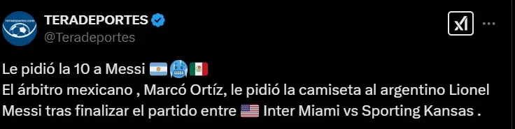 Es común que jugadores o aficionados se acerquen a Messi para pedirle una camiseta, algo que se ha vuelto una costumbre, dada la magnitud de su figura. Sin embargo, esta vez fue completamente diferente. El encargado de hacer una solicitud especial al astro argentino no fue un fanático, sino un árbitro. El mexicano Marco Antonio Ortiz, más conocido como el “Gato”, fue el que se acercó a Messi tras el partido para pedirle su camiseta.