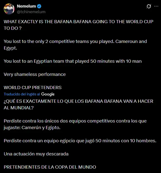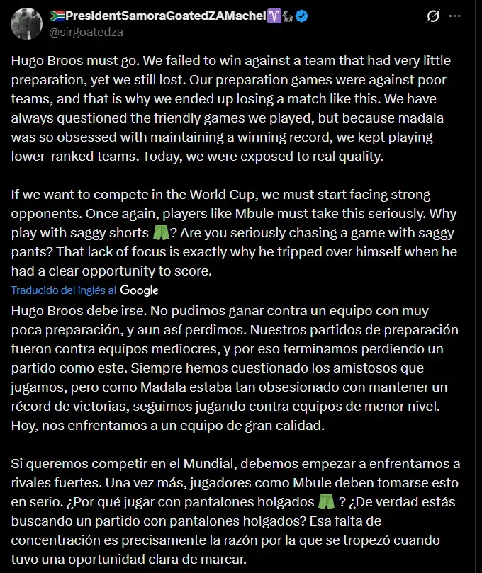 - La afición de los Bafana Bafana expresó su frustración por las debilidades defensivas mostradas de cara al partido inaugural del Mundial 2026 contra México.