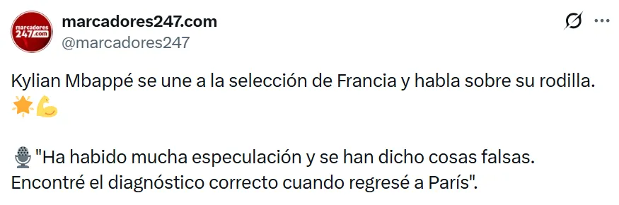 Riolo agregó que la gravedad del fallo radicó en que los médicos examinaron la rodilla equivocada: “Podría haber sido gravísimo por un error. Porque Mbappé ha pasado tiempo sin saber lo que tenía, jugando partidos… Se podía haber roto la rodilla. El sigue su actividad y ve que le sigue doliendo, pero ve que algo no va. Os voy a decir una cosa. El fallo fue enorme, y es que han examinado la otra rodilla. ¿Creéis que estoy diciendo una chorrada? Es lo que ha pasado.”