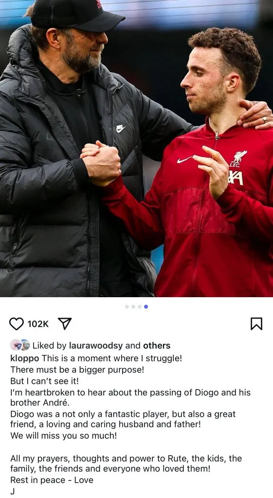 Además, futbolistas como Federico Valverde, Lisandro Martínez, Luis Díaz, así como el ex técnico del Liverpool, Jürgen Klopp, se sumaron a las muestras de cariño en redes sociales, mandando todas las fuerzas posibles a la familia que está viviendo un durísimo momento.