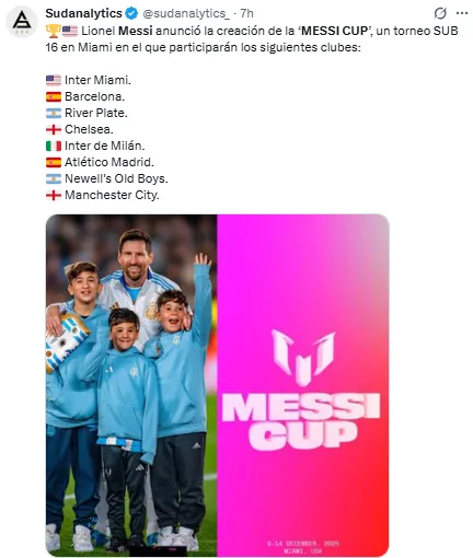 Lionel Messi dio a conocer un nuevo proyecto que se llevará a cabo durante seis días en Miami, Estados Unidos. El evento se realizará en el mes de diciembre donde seguramente veremos el espectáculo que pueda brindar su hijo Thiago, quien se encuentra en las fuerzas básicas del Inter, equipo donde por supuesto juega su padre.