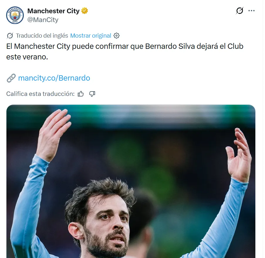 La etapa de una leyenda llegó a su fin. Después de nueve años, Bernardo Silva dejará de ser futbolista del Manchester City, algo que ya fue confirmado tanto por el propio jugador como por la institución. El mediocampista portugués cerrará su ciclo al final de la temporada, poniendo punto final a una era dorada.