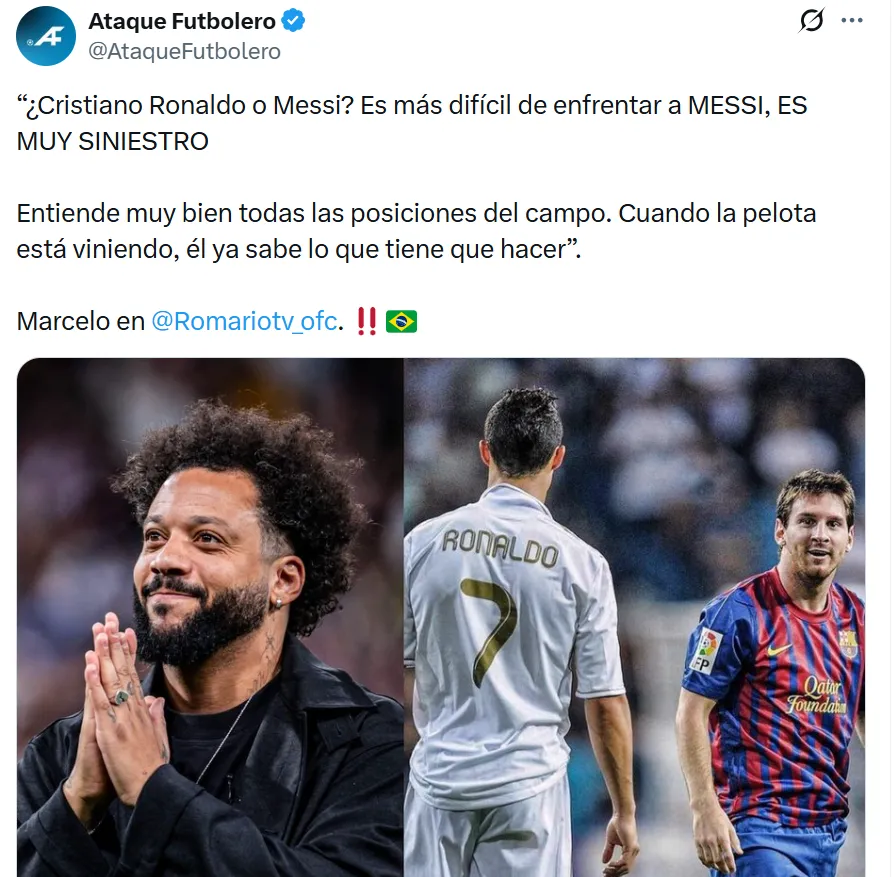 Marcelo eligió al mejor entre Cristiano Ronaldo y Lionel Messi: “Es muy siniestro”