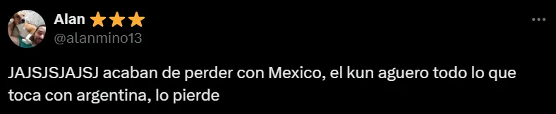 Tras igualar 2-2 en el tiempo regular, México se impuso por 4-3 en los penales, con el valor agregado de que precisamente el Kun Agüero fue quien falló la última ejecución que sentenció la clasificación del combinado azteca. Tras ello, estallaron los memes y reacciones en las redes sociales.