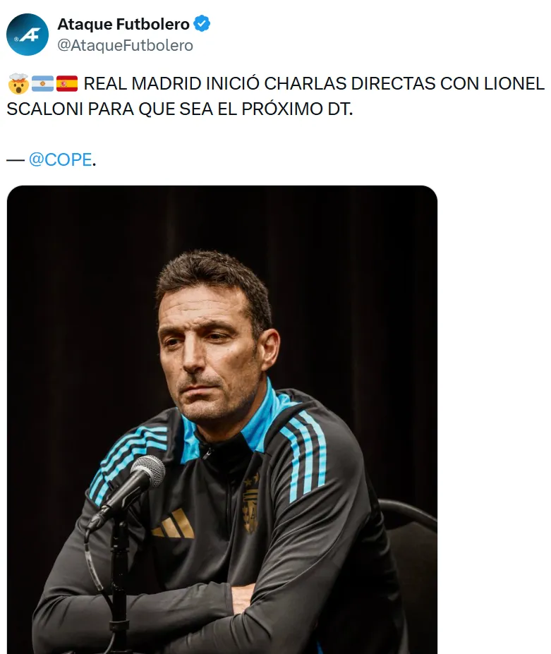 • Lionel Scaloni es seguido por el Real Madrid para la temporada después del Mundial 2026.