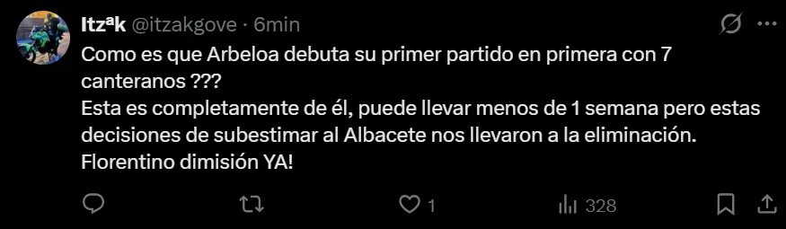 La crisis del Real Madrid continúa profundizándose. La Casa Blanca perdió por 3-2 este miércoles ante el Albacete y quedó eliminado de la Copa del Rey en octavos de final. Tras la caída el pasado domingo contra Barcelona en la final de la Supercopa de España, los aficionados están muy molestos con el presente Merengue y eligieron a un apuntado al que cargarle la responsabilidad de este duro presente.